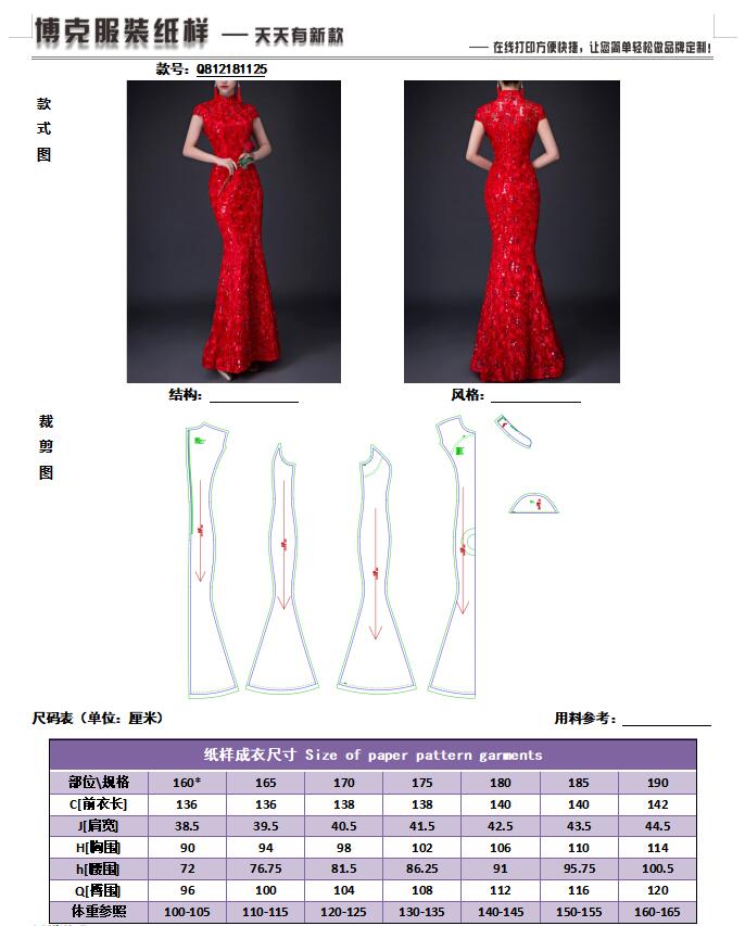 > 立领鱼尾旗袍裙智能样板 Q812181125